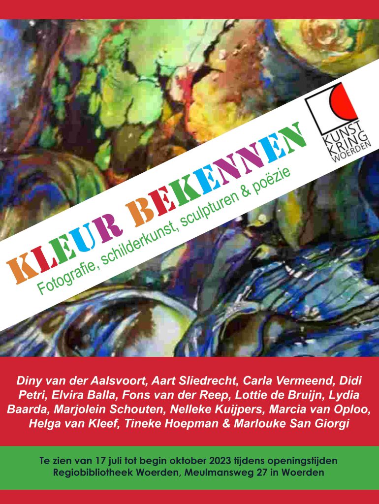 Vanaf heden tot 2 oktober is in de Bibliotheek in Woerden de thema-expositie ‘Kleur bekennen’ van leden van de Kunstkring ingericht. De expositie is te bezoeken tijdens de openingsuren van de bibliotheek.  Voor een beschrijving in de nieuwsbrief van augustus, klik hier